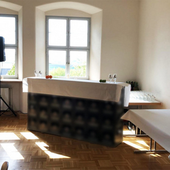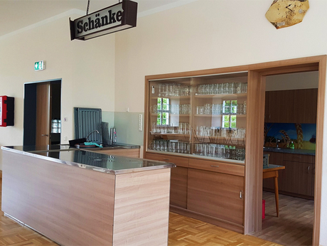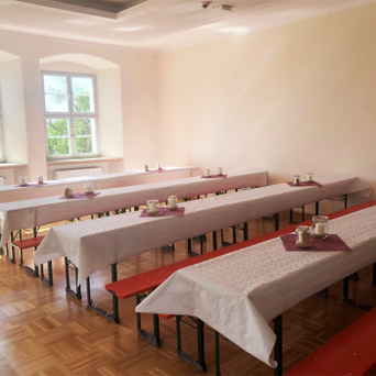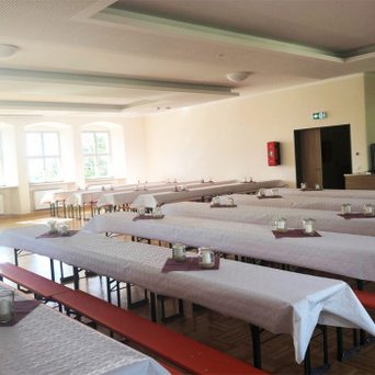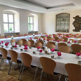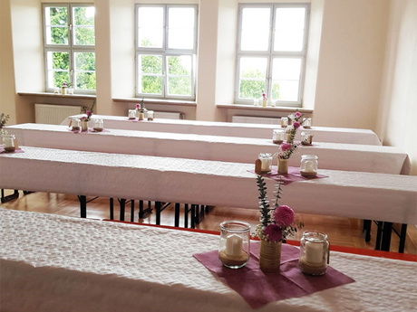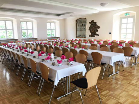 - helle, neutrale Einrichtung, sodass sie je nach Dekoration die Räumlichkeit in einen Tagungsraum, eine gemütliche festliche "Stube" oder in einen eleganten Saal verwandeln können