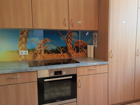 - kleine Küche zur Mitbenutzung (Gläser vorhanden sowie Geschirr in geringen Mengen)